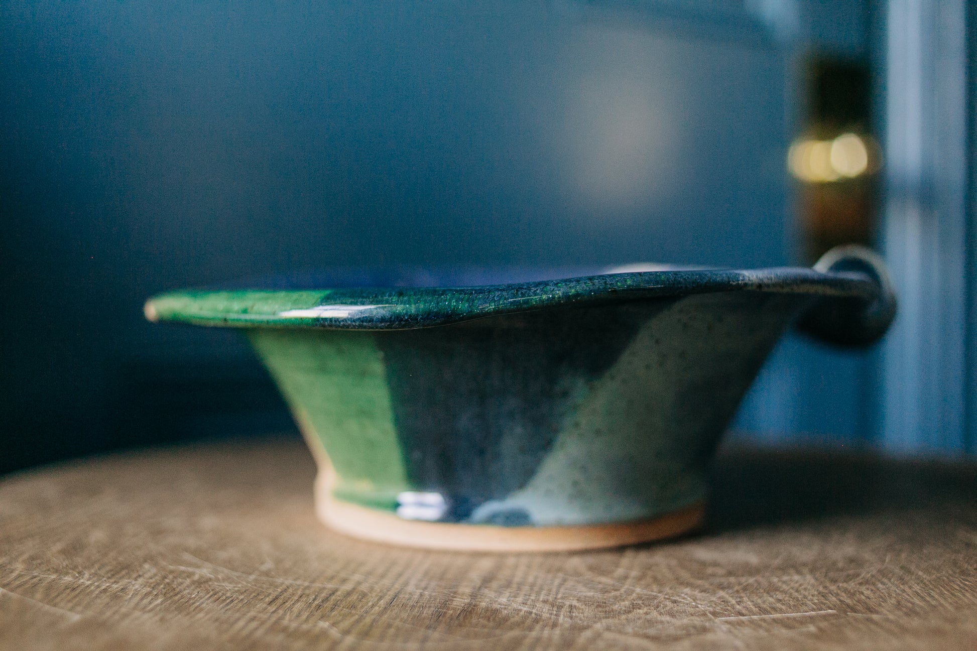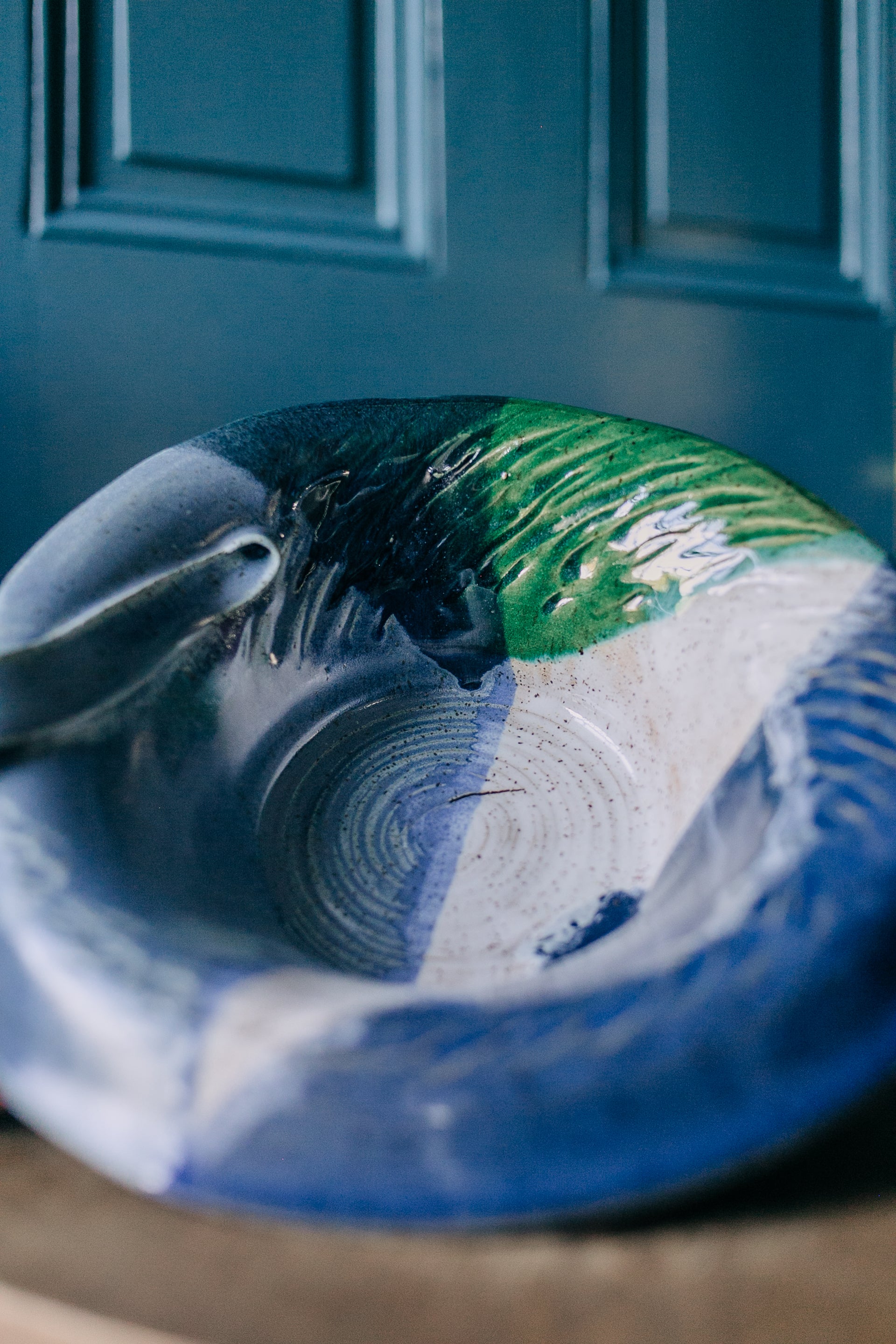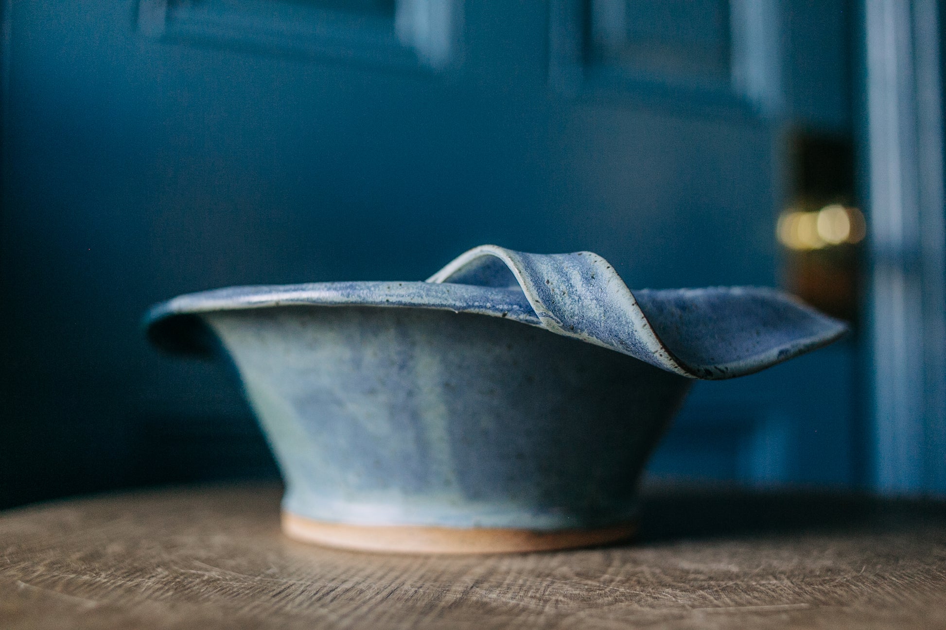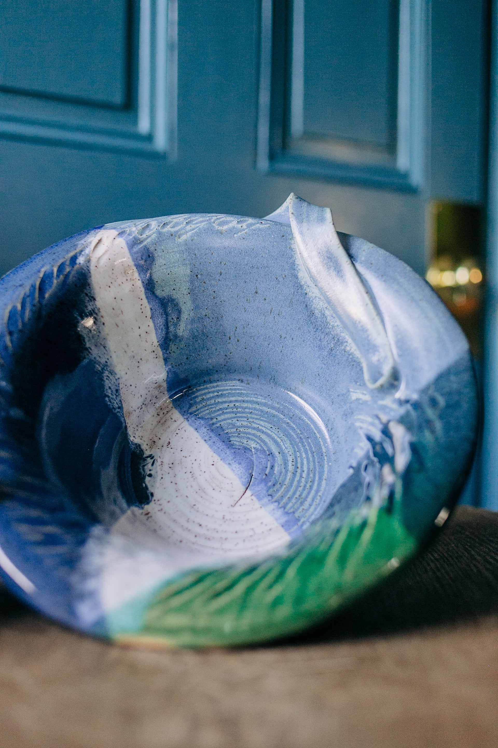 Totally whacko, totally impractical. Carving, texture, twists and curls. Basically everything under the sun and a tiny little crack in the bottom, so this guy is purely decorative. Let your imagination run wild... I certainly did! 10 1/2" wide by 3 1/4" high
