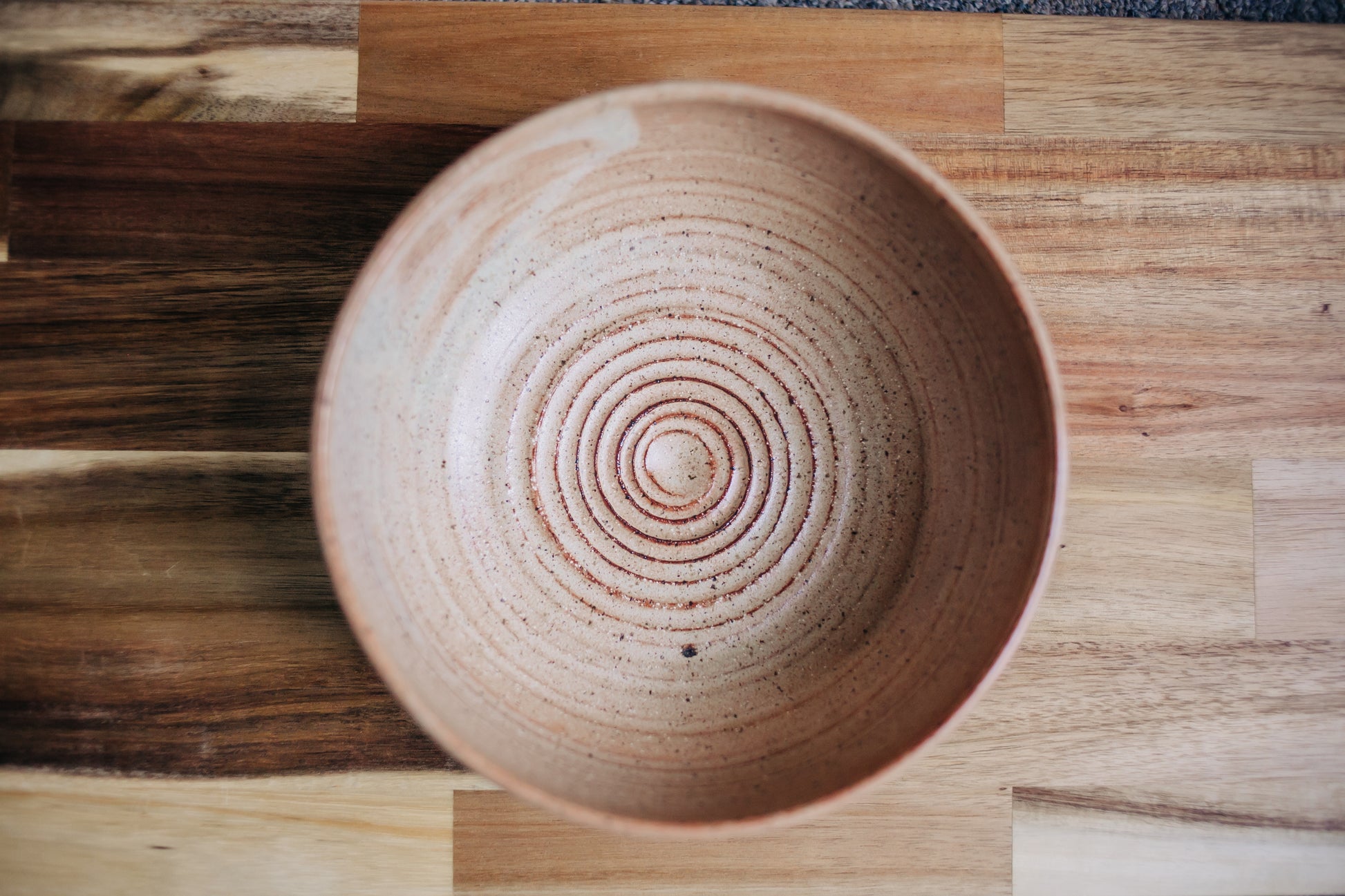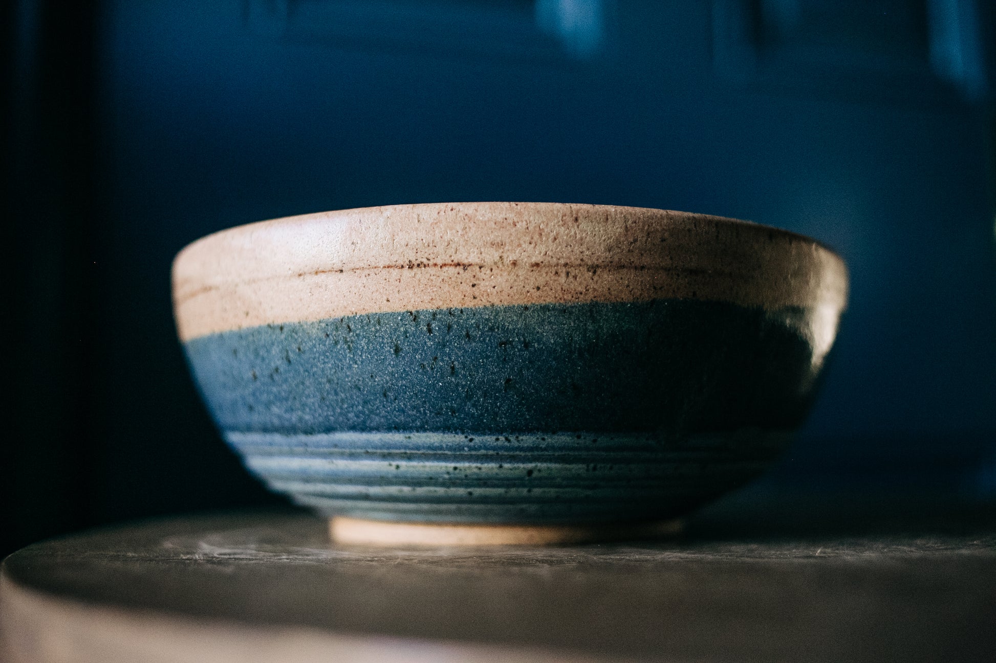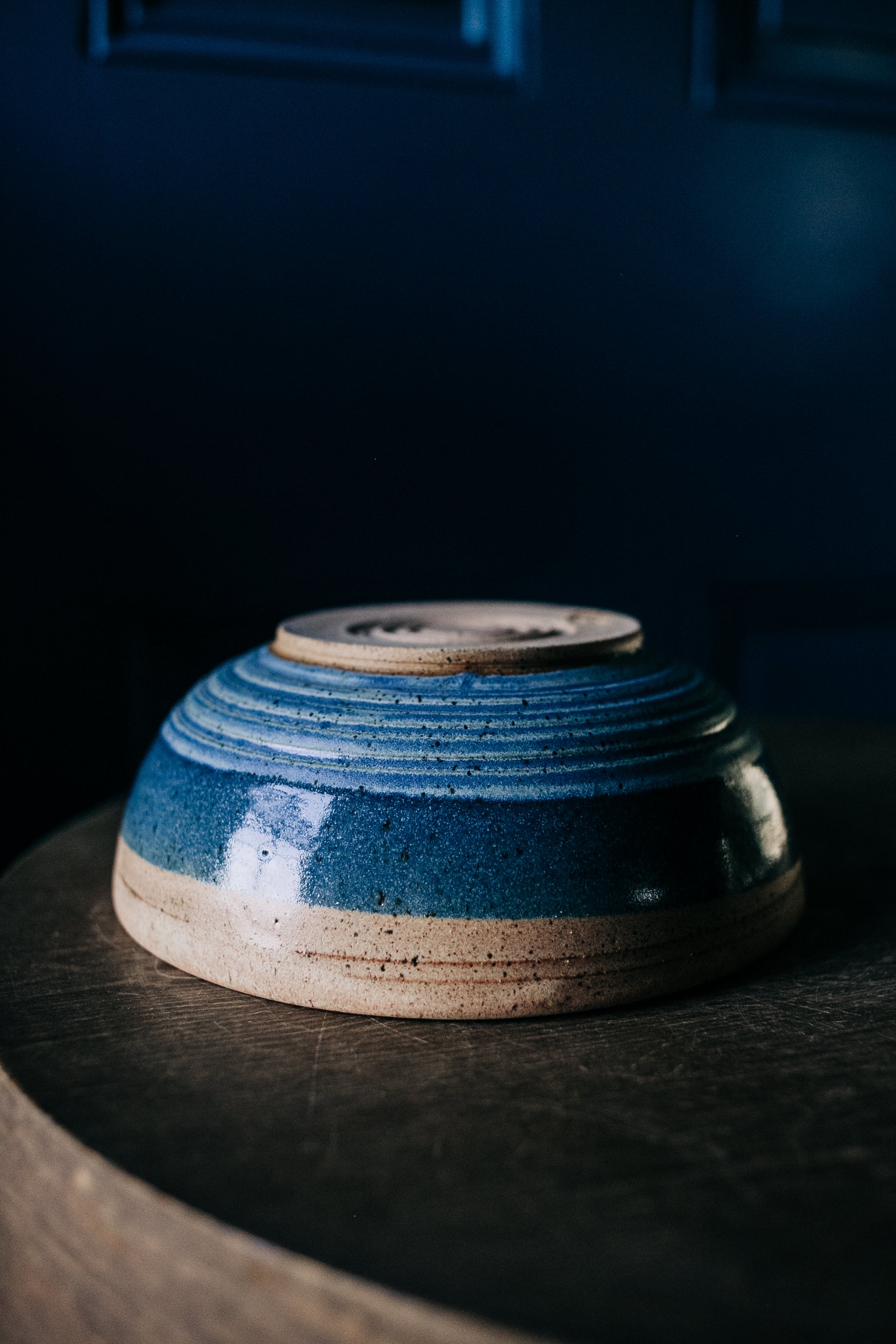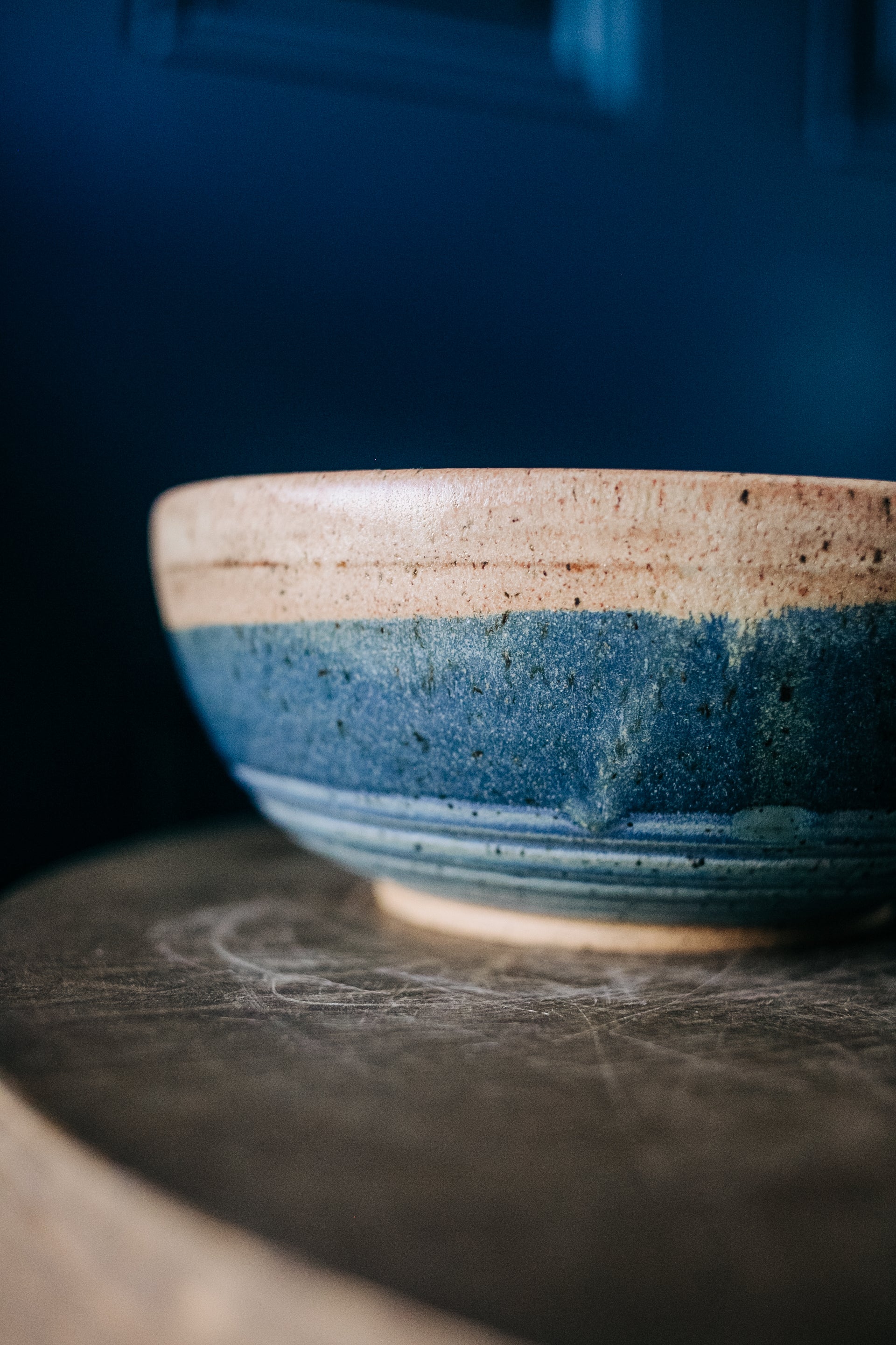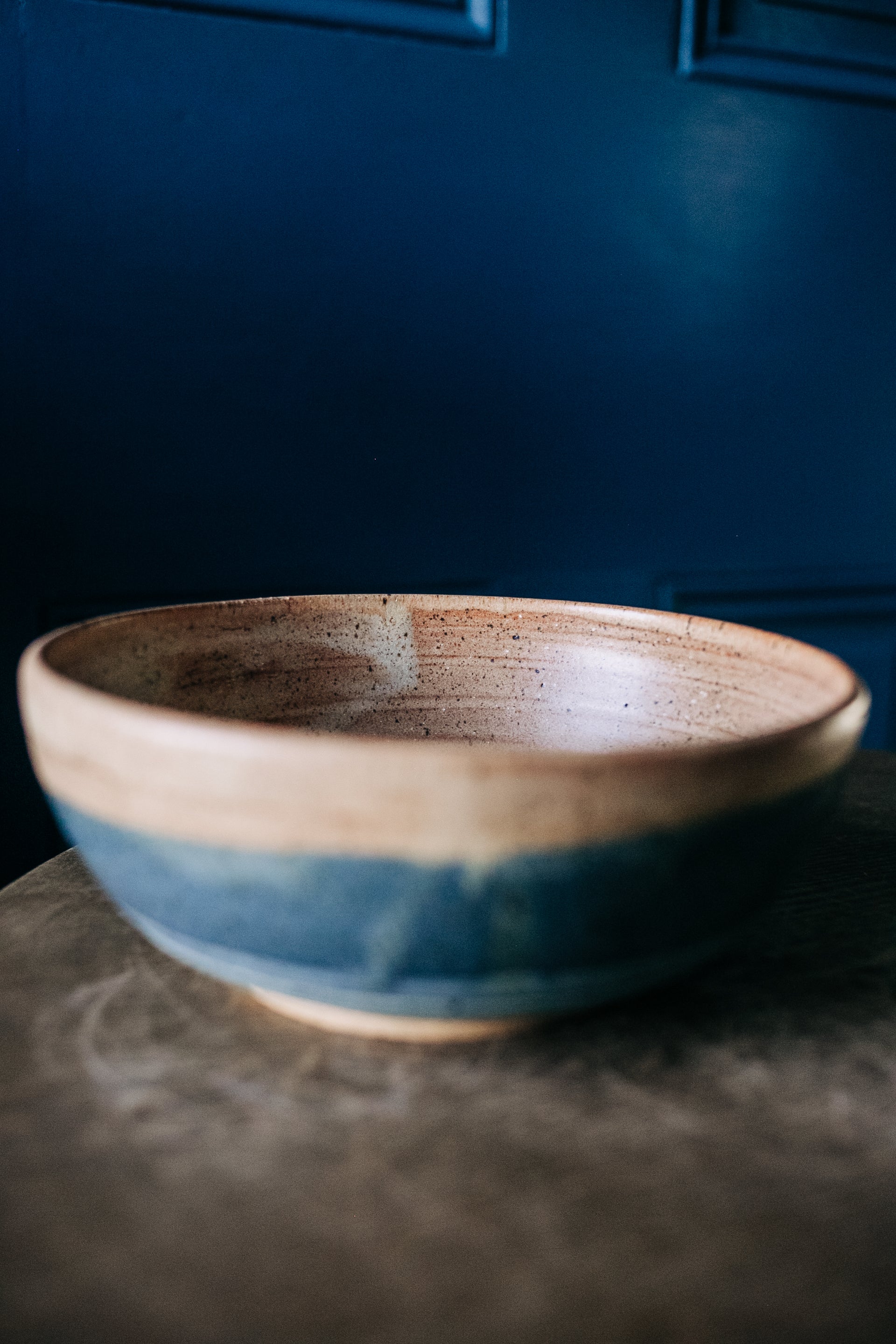 This guy brings all that I love together in one piece - he's solid, textured and handsome. The trick with bowls is that you want to decorate the outside, but it's the inside that you see first. 7 1/2" in diameter x 3" tall