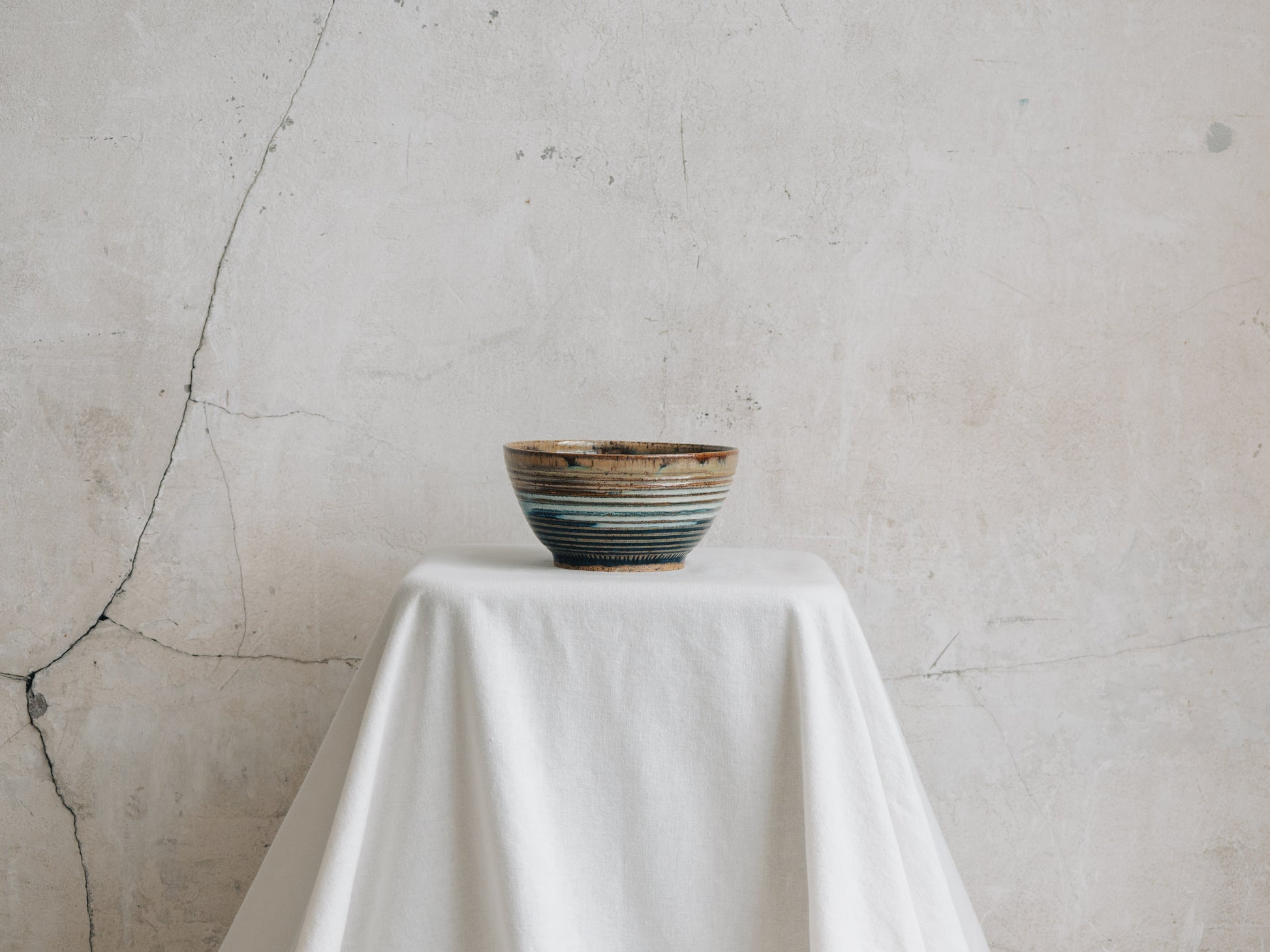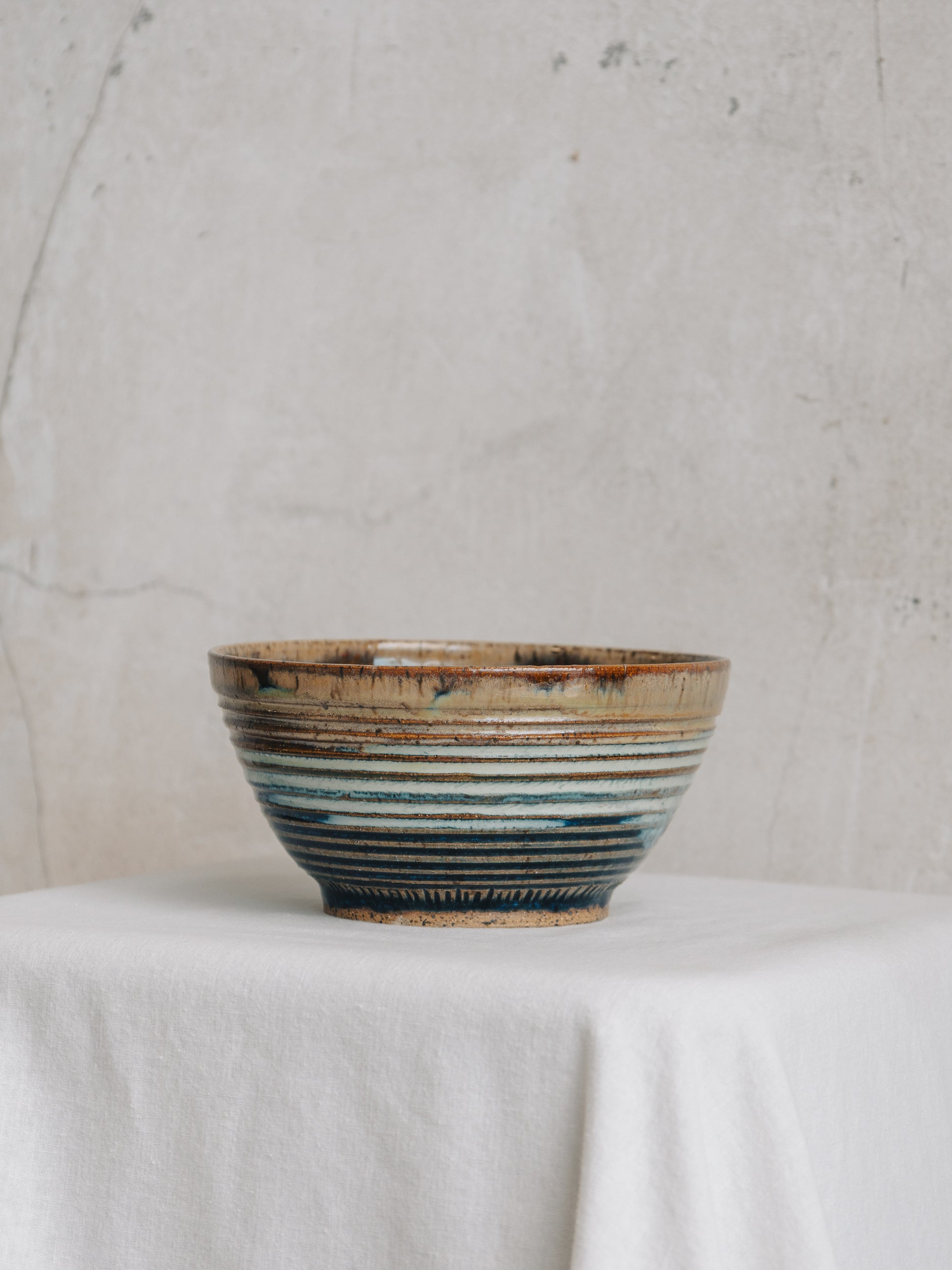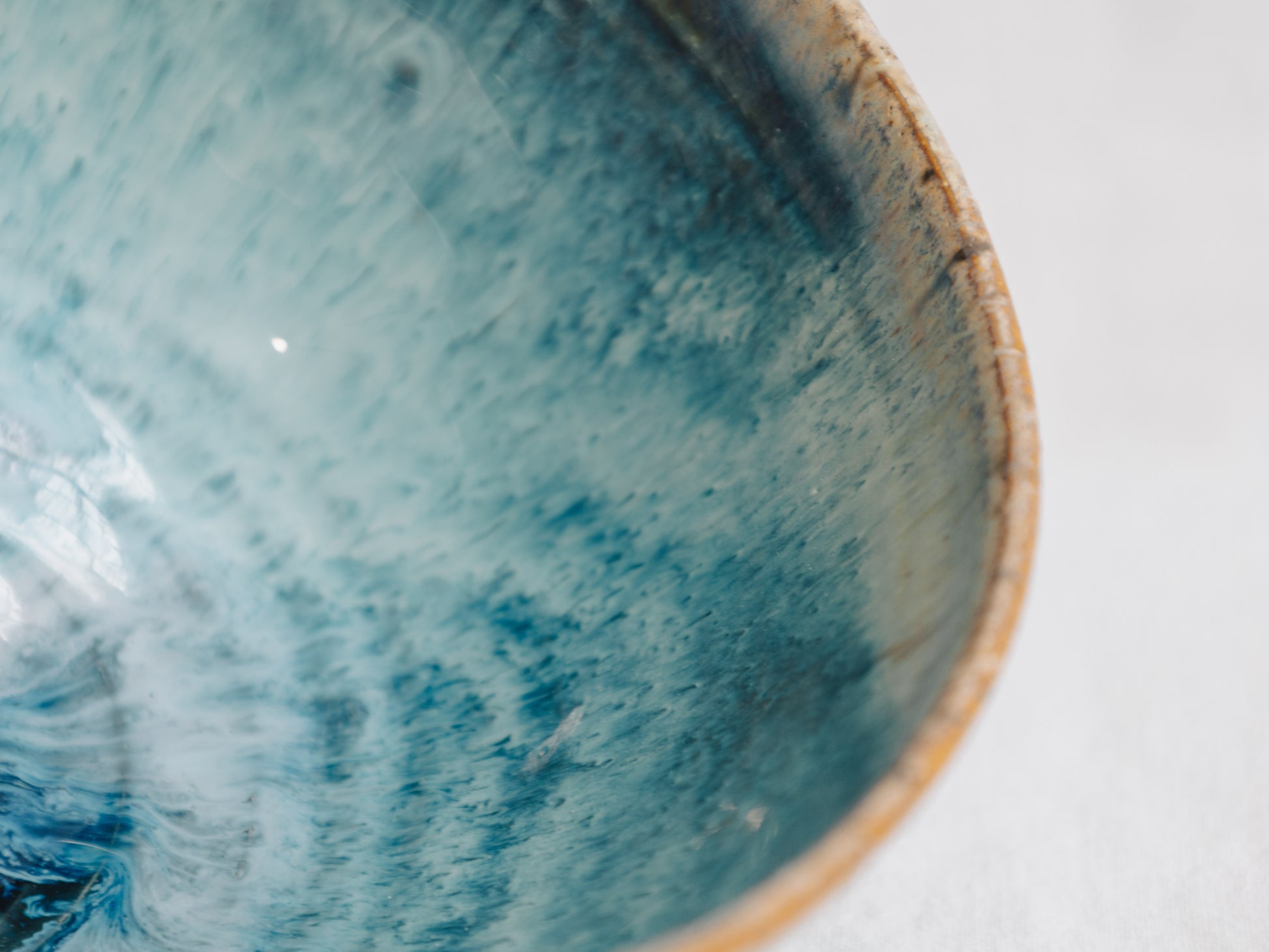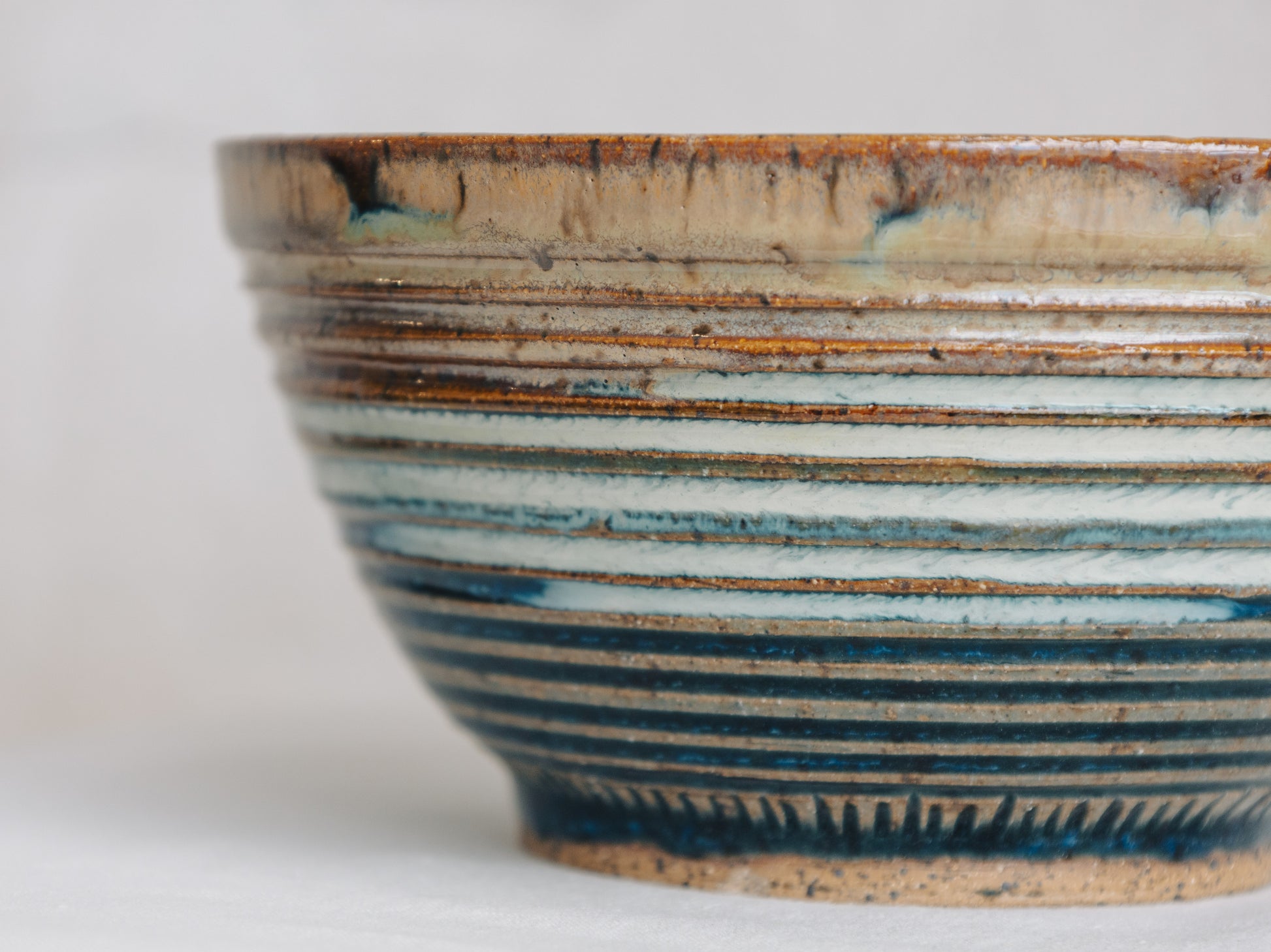 Bowls continue to be one of my favorite things. Adding textures and layering glazes is another and this guy doesn't disappoint. The magic inside is something that only happens when the stars align. He's solid, feels good to hold and would be an awesome bowl for chili, stir fry or an incredible ice cream sundae! 7" around by 3 1/2" tall