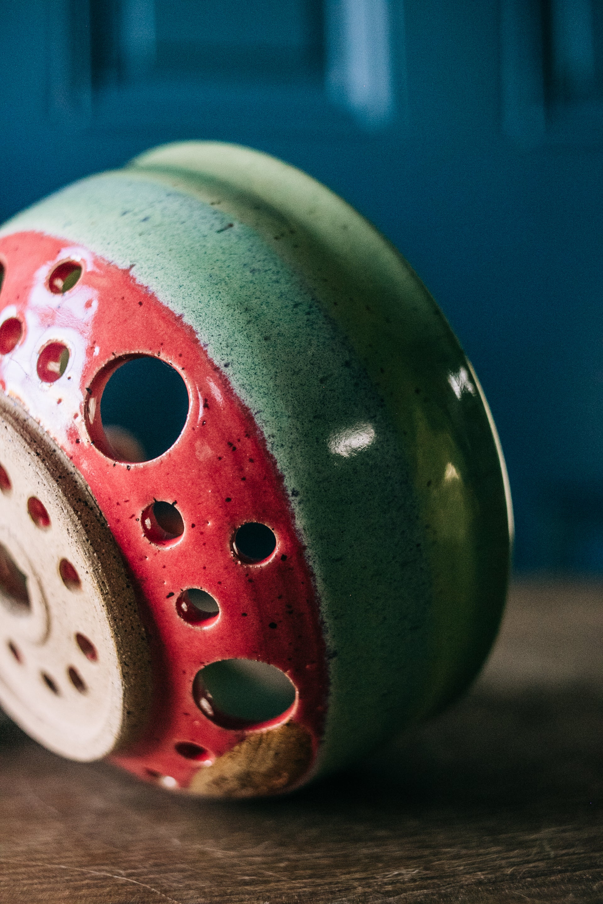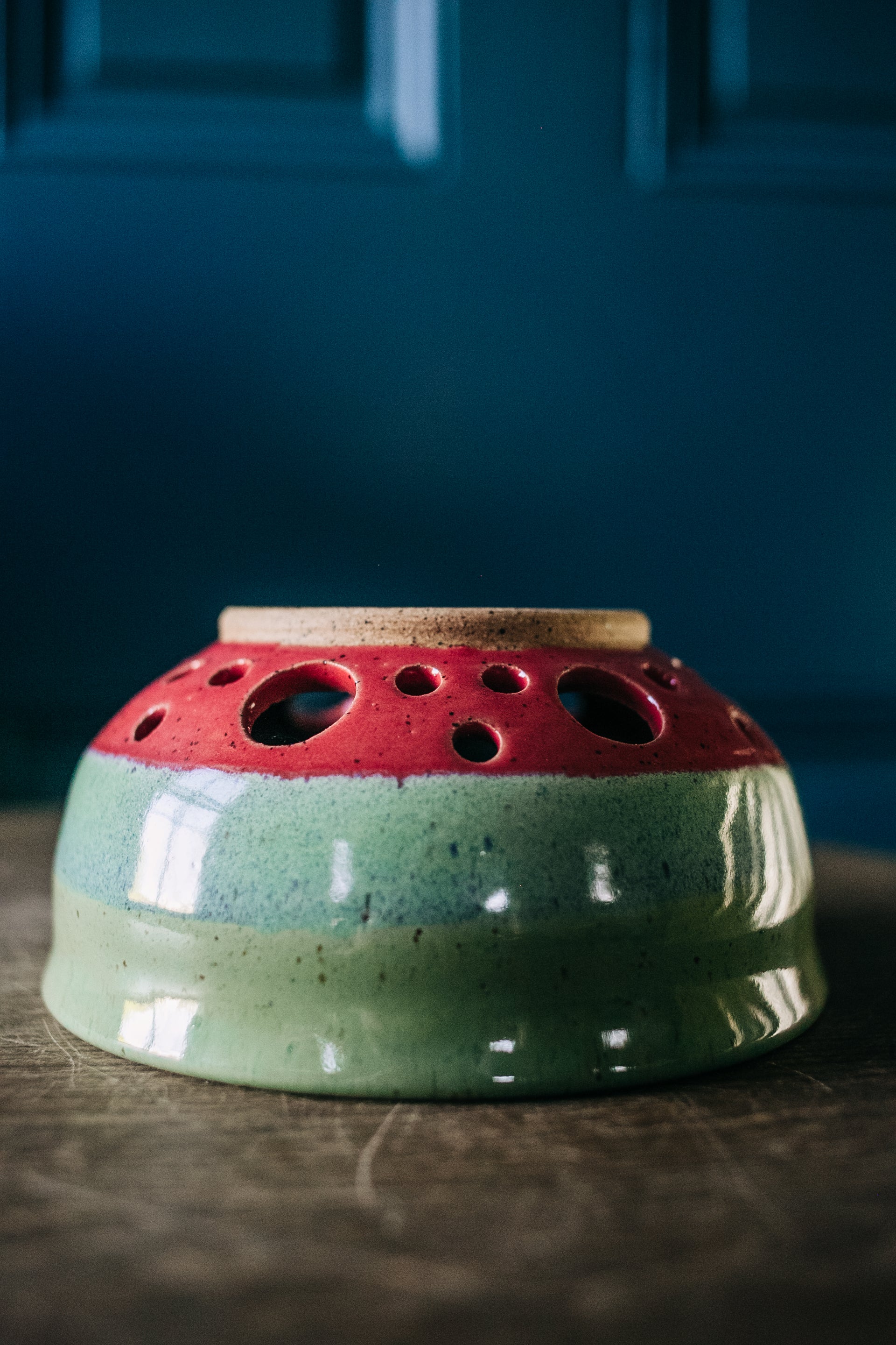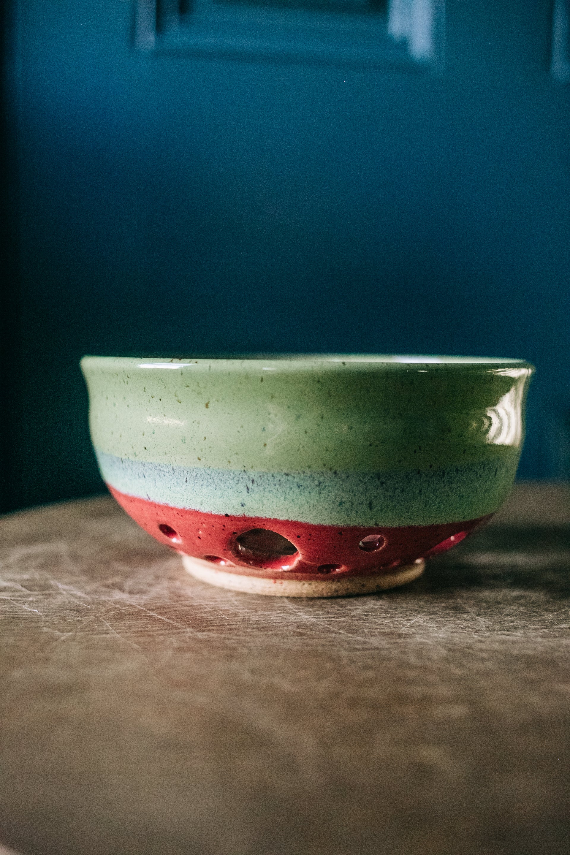 She’s a sweetheart. Her colors are dreamy and she can handle some jumbo strawberries, but a few blueberries might escape. 6 1/4” wide by 3” high